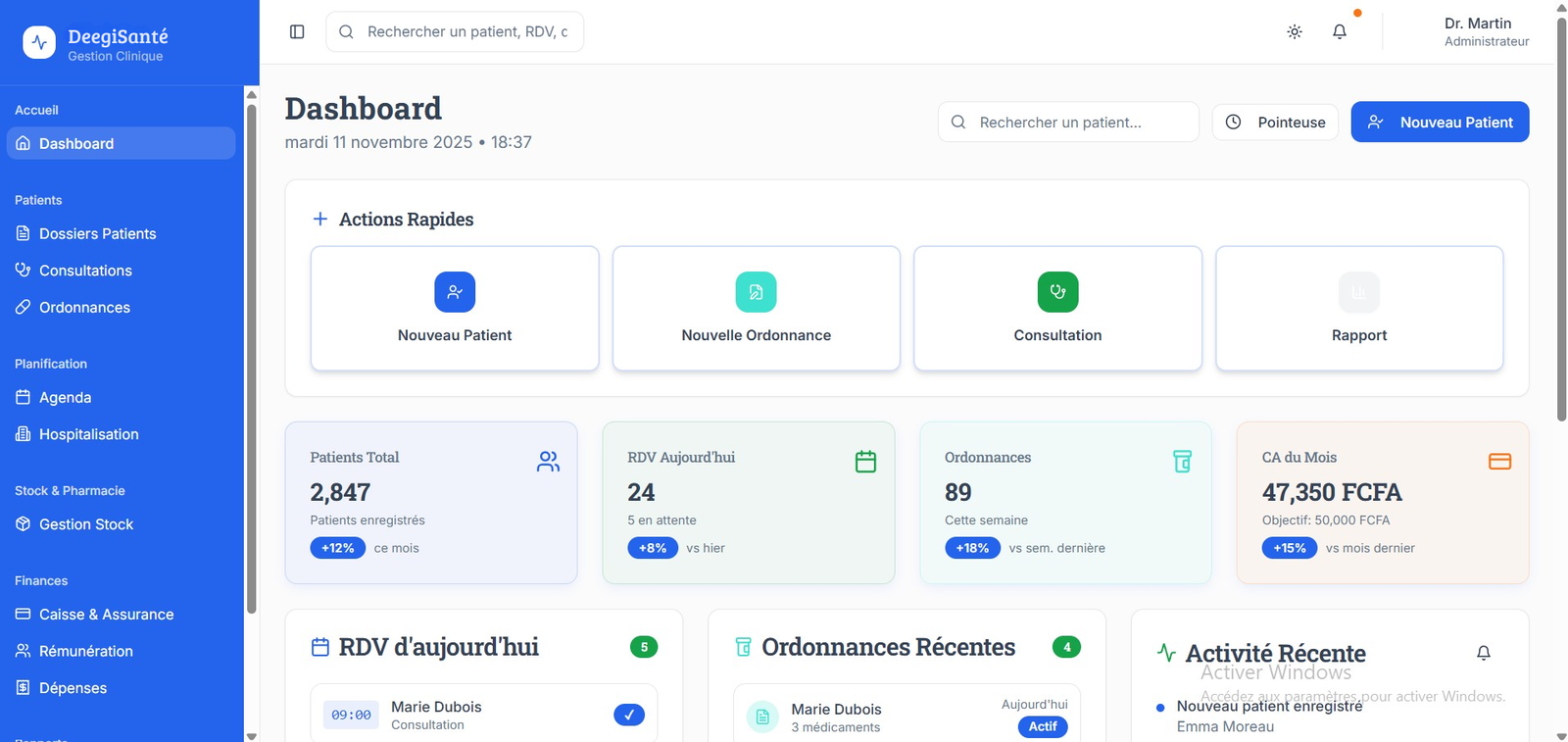Oui, DeegiSanté s’adapte à tous les types d’établissements : cabinets, cliniques, hôpitaux, laboratoires, pharmacies… tout est modulable selon vos besoins.